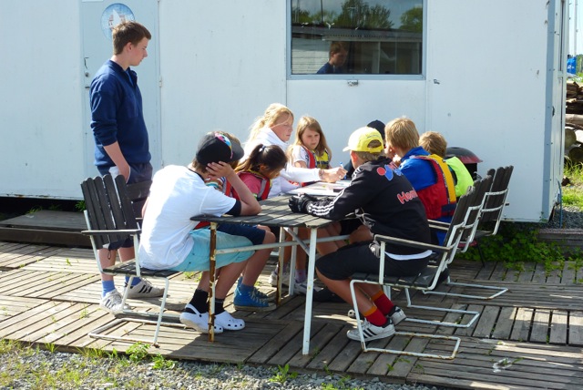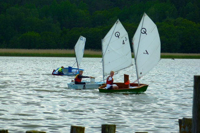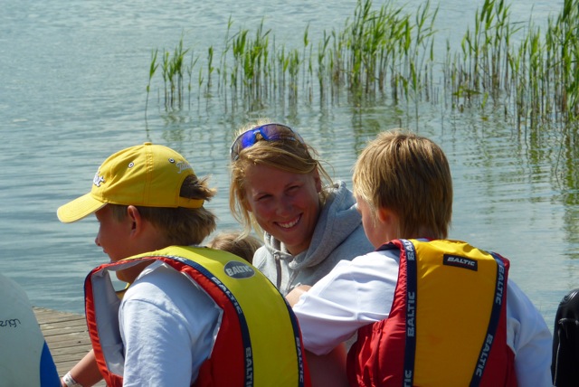 Solen värmer och skarvarna hörs på avstånd från Vinterholmen. Therese Antman har nyligen kommit hem från världscupseglingarna i sin 470 jolle. Värlscupen seglades på OS banorna i England – ett blött äventyr med regn varje dag, berättar Therese. Nu är hon hemma igen för att träna ungdomarna på Trosa båtklubb att öka sina färdigheter i att hantera optimisten på vattnet. Sju förväntansfulla ungdomar är glada över att åter få träffa och bli tränade av Therese och hennes bror Kristoffer. Kl är nio när Therese går igenom förmiddagens övningar. Vid 9:30 lämnar hela skaran bryggan i sina Optimister. Det har blivit något fler moln på himlen, men övervägande sol. Vinden blåser lätt från VNV. Vid 10:30 stabiliserar vinden sig något och blåser nu mellan 2-4 m/s. Det är nu det blir lite lek ute på banan i form av lagspel med en tennisboll. Bollen får man bara hålla i 5 sekunder och måste därefter passas. Mål gör man i följebåten där Therese och Kristoffer sitter. Mycket skratt och glada tillmälen hörs från fjärden. Detta försommarläger kommer att pågå i dagarna tre, från onsdagen den 13 juni till fredagen den 15 juni, mellan klockan 09:00-16:00. Therese skiner i takt med solen när hon i en paus berättar att alla är så duktiga och det är kul när alla är så sugna på att segla. Lunch har ungdomarna knappt tid med. De vill ut på vattnet igen, så lunch kortas något.