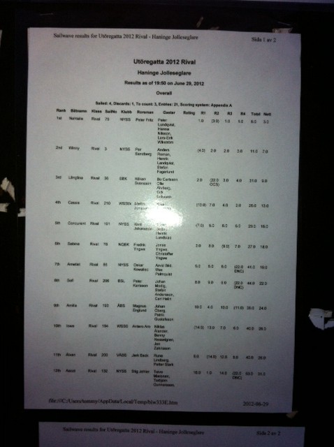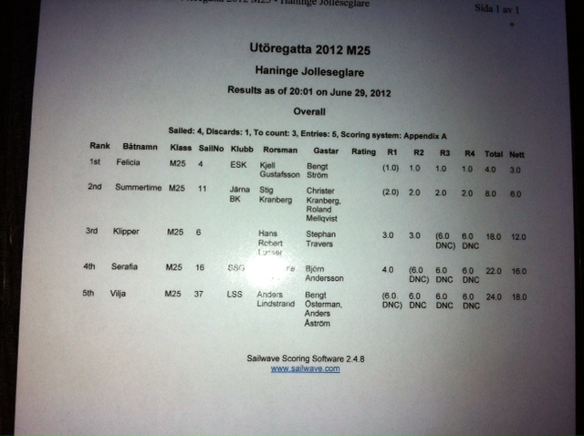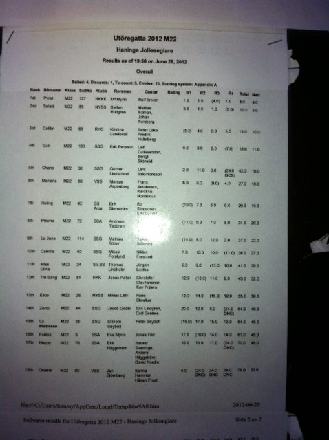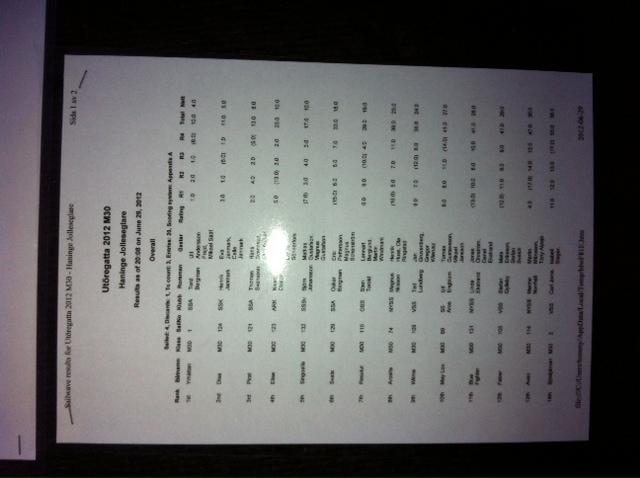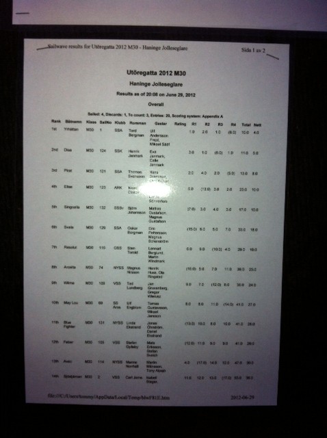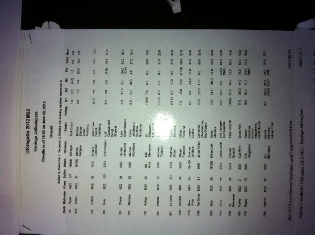 I morgon kväll kanske jag har mer tid så då ska jag kunna renskriva morgondagens resultat lite bättre.