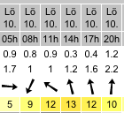 Bilden till vänster är vindar och temperatur för Askrikefjärden under lördagen. Under en meter per sekund i vindstyrka, med byar på strax över en meter. Växlande riktning och en temperatur på strax över tio grader.