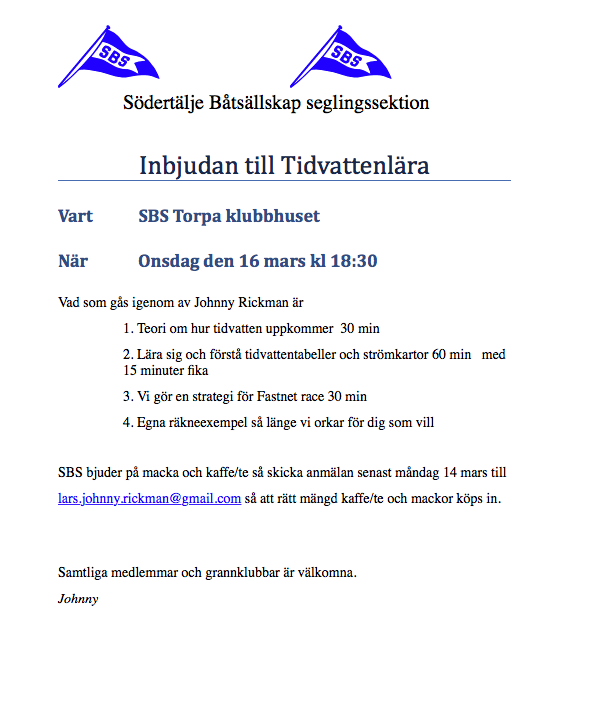 SBS inbjuder till Tidvattenlära