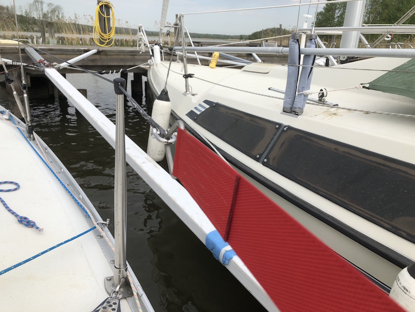 Själva mantåget såg riktigt illa ut med en gammal wire som blivit sliten och ful. Nu blev det 4 mm Dyneema. För första gången i mitt liv har jag också splitsat dessa själv med en ögle-splits i varje ända av linan. Det va inte så svårt. Antagligen enklare än att splitsa vanlig tamp.