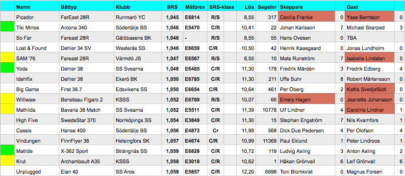 Vi tar listan uppifrån som vanligt. Först, FarEast 28R Picador med Cecilia Franke och Ysse Berntsson. Ett helt kvinnligt team vilket är kul. Det hör ju inte till vanligheterna. Jag tror att det hänt två gånger tidigare att det varit helt kvinnliga team med på 2star. Nu är det två i samma startgrupp vilket är lyckat.