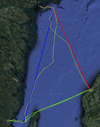 Bra startförhållanden med lagom vind. Vi var ringrostiga och kom igång sent. Sedan fick vi inte riktigt fart på första kryssen ut från start. Vi seglade fort och vi seglade högt men tyvärr inte i kombination av varandra Sedan kom bleket, ca 5 timmar med 0,2-1,8 knop….. När vinden äntligen kom var man less och ville bara i mål och sova.