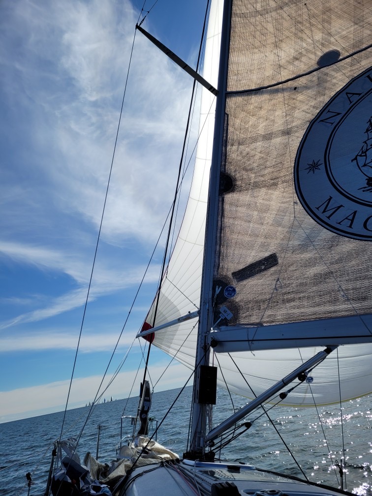 Kvar i hamn ligger Linjett 27 Aurelia, enligt uppgift med problem med storbommen.
