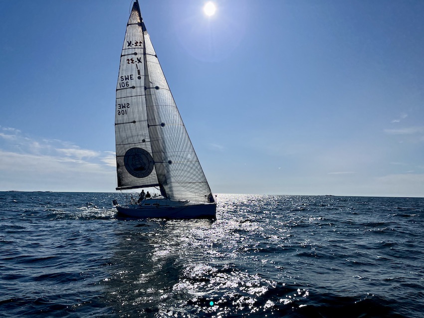 Torbjörn Blomberg med sin X-35 Sedna passerade oss redan vid södra Fifång. Lite väl tidigt!
